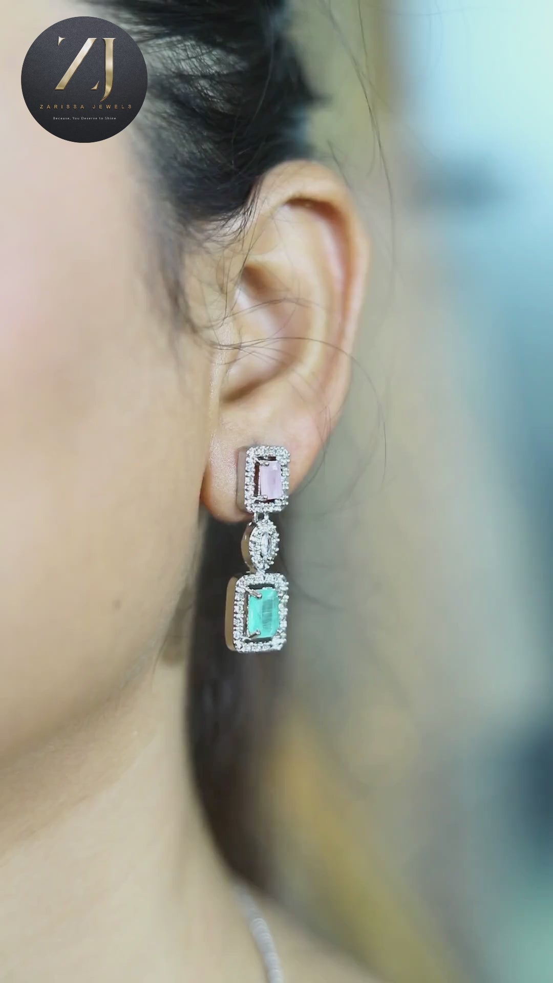 • Material: Rhodium-plated alloy, premium cubic zirconia, colored glass stones