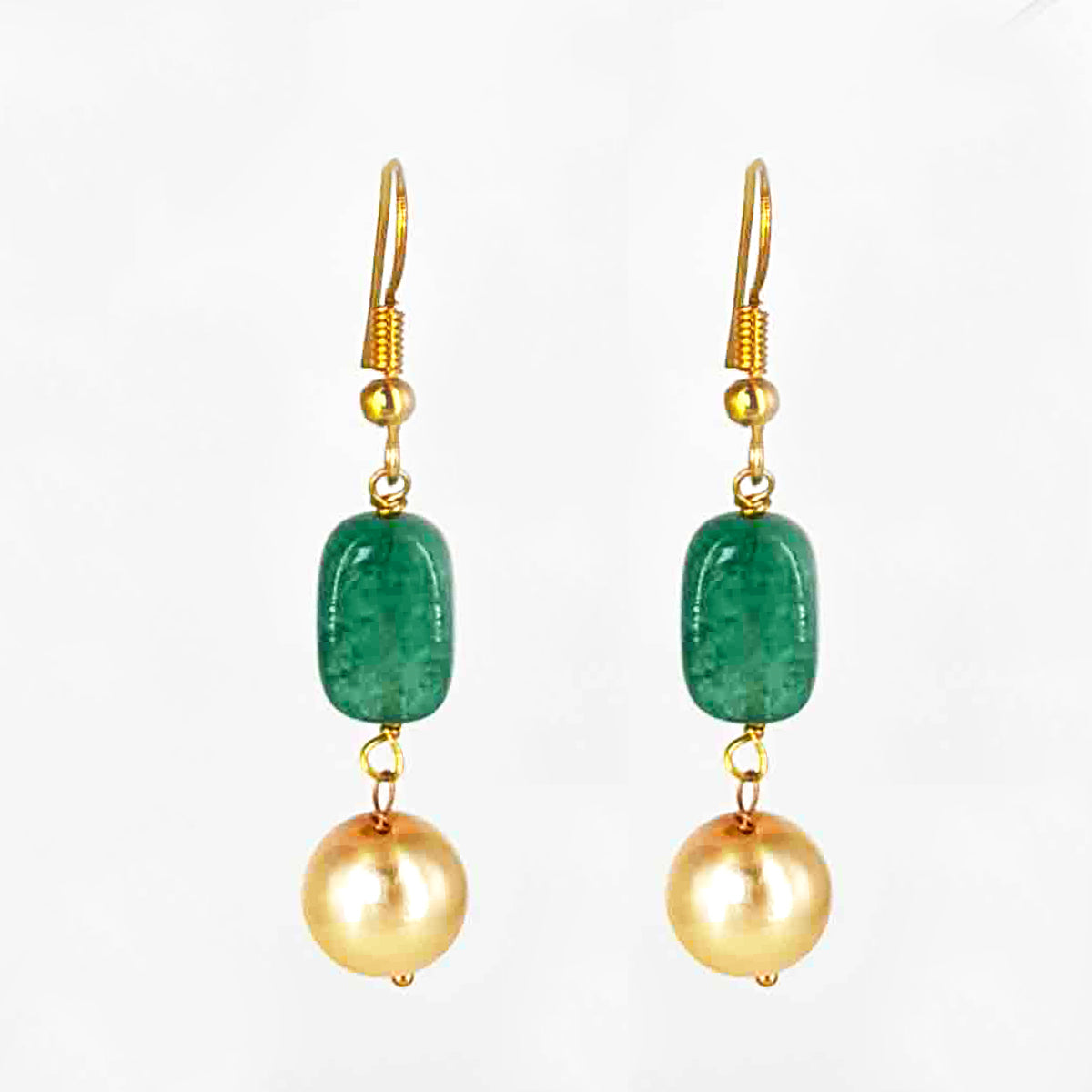 The set includes matching drop earrings featuring a green bead and a gold faux pearl, perfect for weddings, parties, or festive occasions.