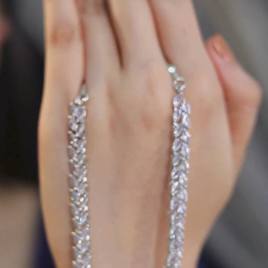 • Material: Rhodium-plated alloy, premium cubic zirconia